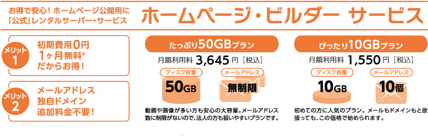 - ホームページ・ビルダー サービスのキャンペーン特典です。 ご利用には「ホームページ・ビルダー サービス」へのお申し込みが必要です。