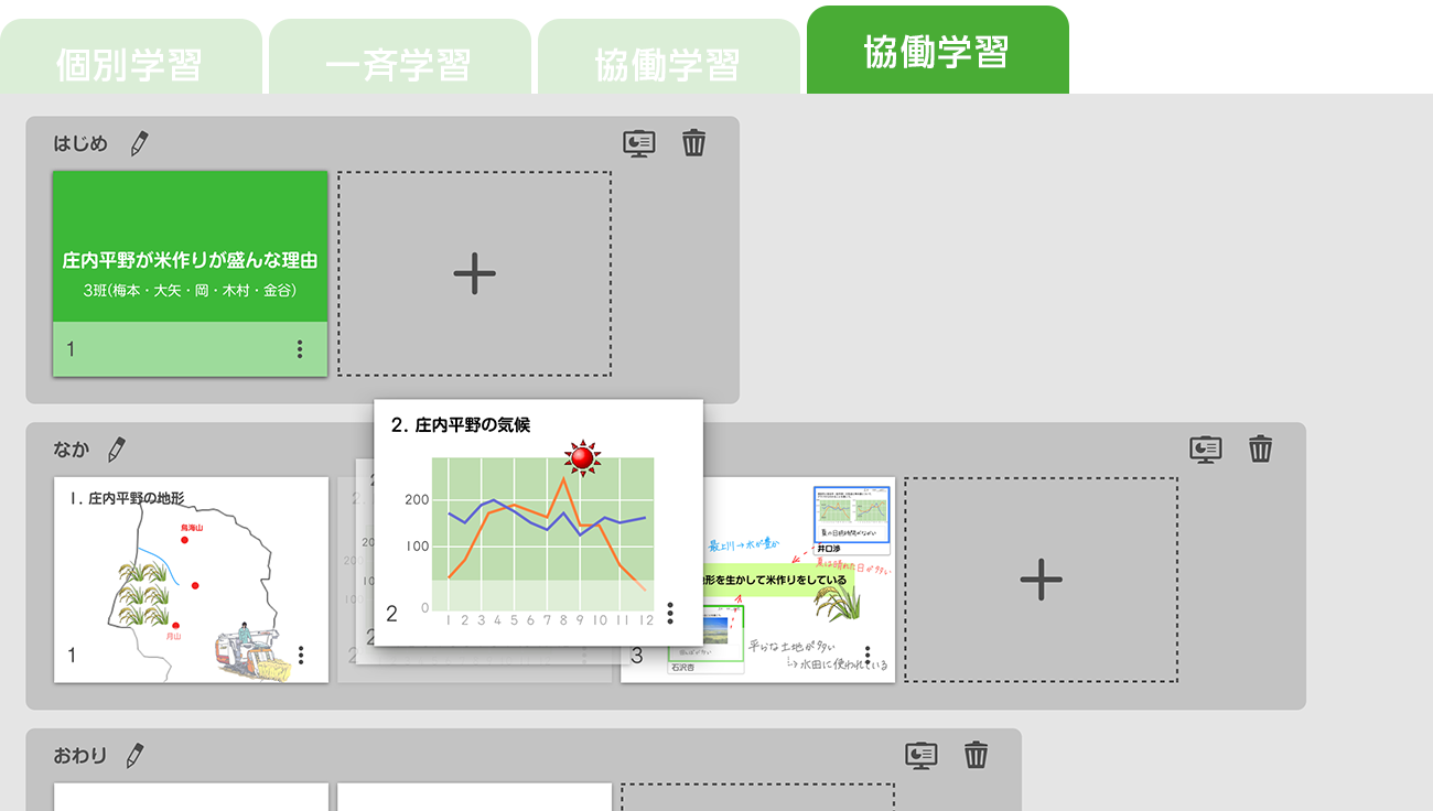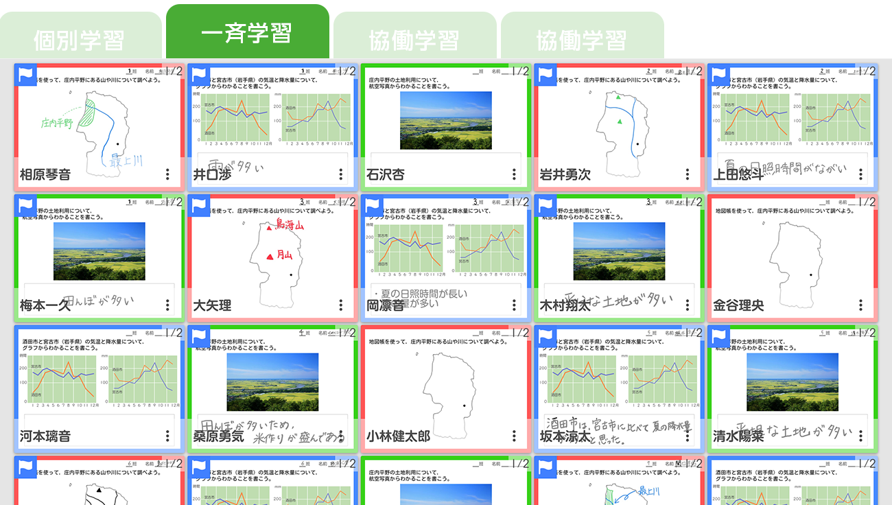 一斉・個別・協働など、授業展開に合わせて学習内容を選択することができます。