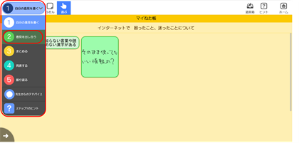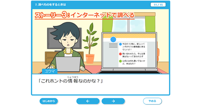 概要 | 「インターネットを使った情報の集め方」という課題について、「デジタルもぞう紙」を活用しながら、情報を集めるときや、読みとるときに大切なことについて話し合う活動を通して、インターネット上の情報を適切に扱う力を養う教材です。 | |