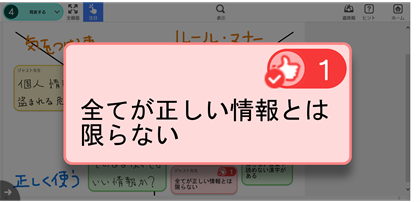 児童が話し合ってまとめた内容を、大型掲示装置に表示してクラス全員で共有します。