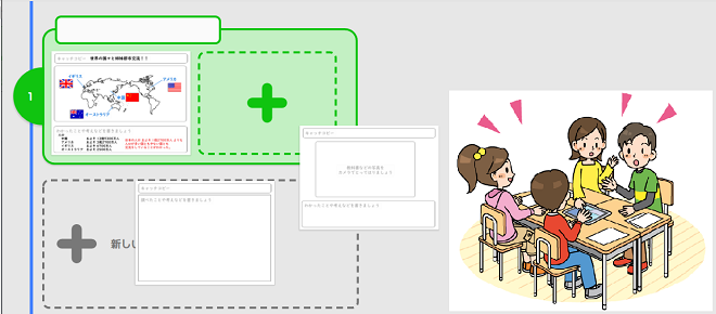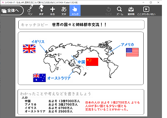 概要 | 「日本と世界のつながりを調べる」という課題について、「シナリオカード」で図や表を使って説明できるようになることを狙いとした教材です。 | |