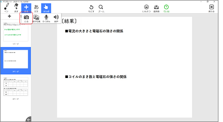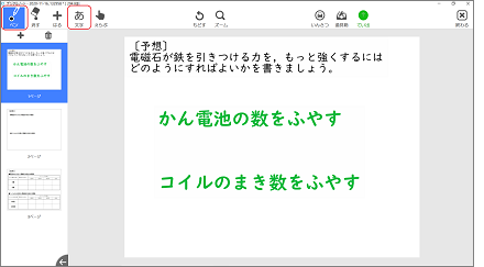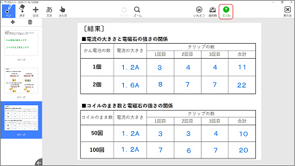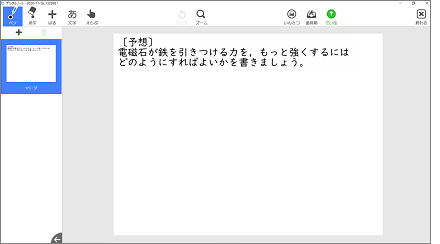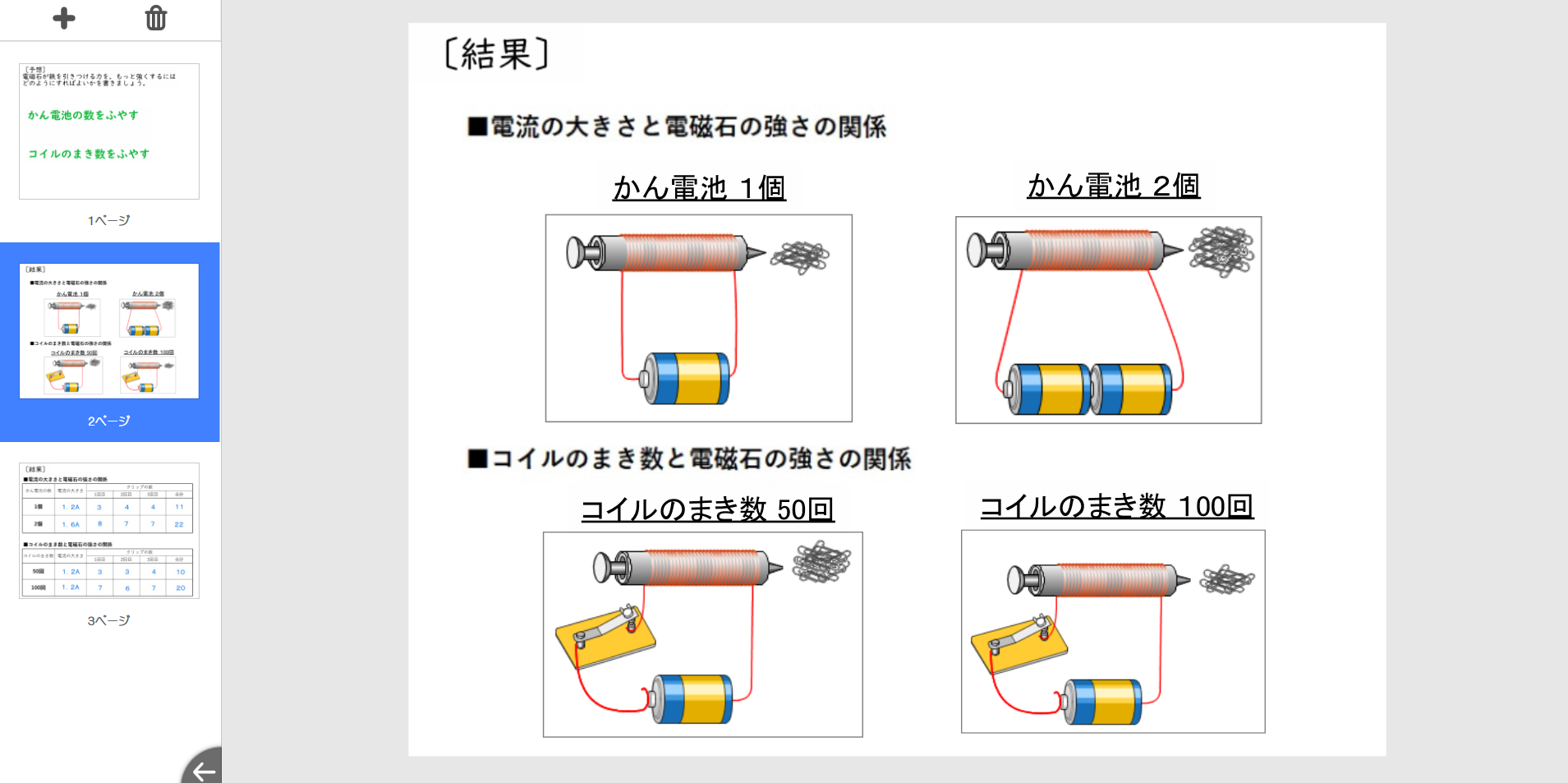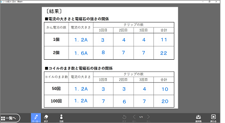 概要 | 「電磁石が鉄を引きつける力をより強くするにはどのようにしたらよいか」という課題について、「デジタルノート」を活用しながら、協働して「予想と計画」・「実験」・「結果の考察」を行うことで、電磁石の理解を深める教材です。 | |