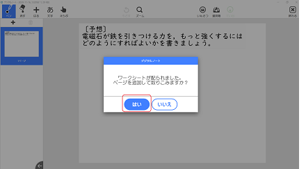 デジタルノートであらかじめ作成しておいたワークシート(複数)を児童へ配付します。
