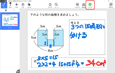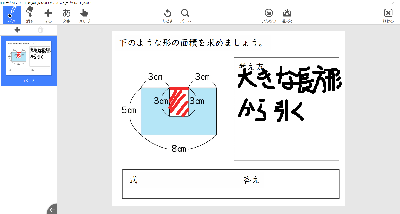 図を示したり、画面の注目して欲しいところに印をつけたりしながら、自分の考えを説明することが出来る。