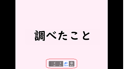 導入 | 1.本時のめあてと学習の流れについて確認する。 ・身のまわりにあるものについて調べ、気づいたことをまとめ、発表する。 聞き手を引きつける発表になるように、シナリオを練り直そう。 | ・前時にまでに作成したシナリオカードの発表資料を開かせる。 |